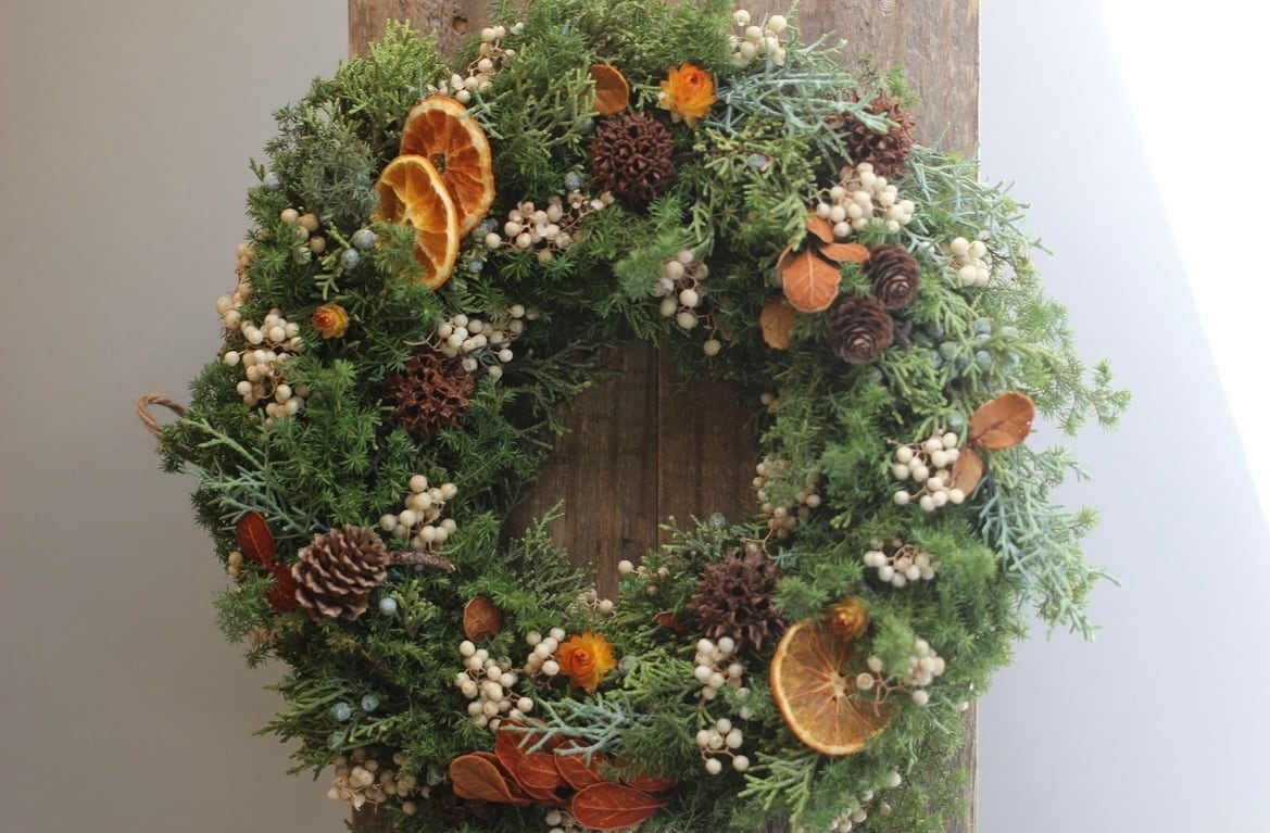香り豊かなリースをクリスマスまでお楽しみ下さい。